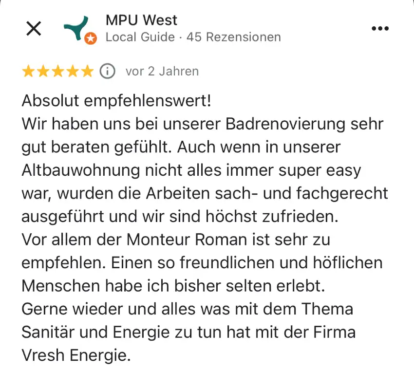 Ihr neues Wohlfühl-Bad - pünktlich und fachgerecht vom Team VReSH Energie GmbH.